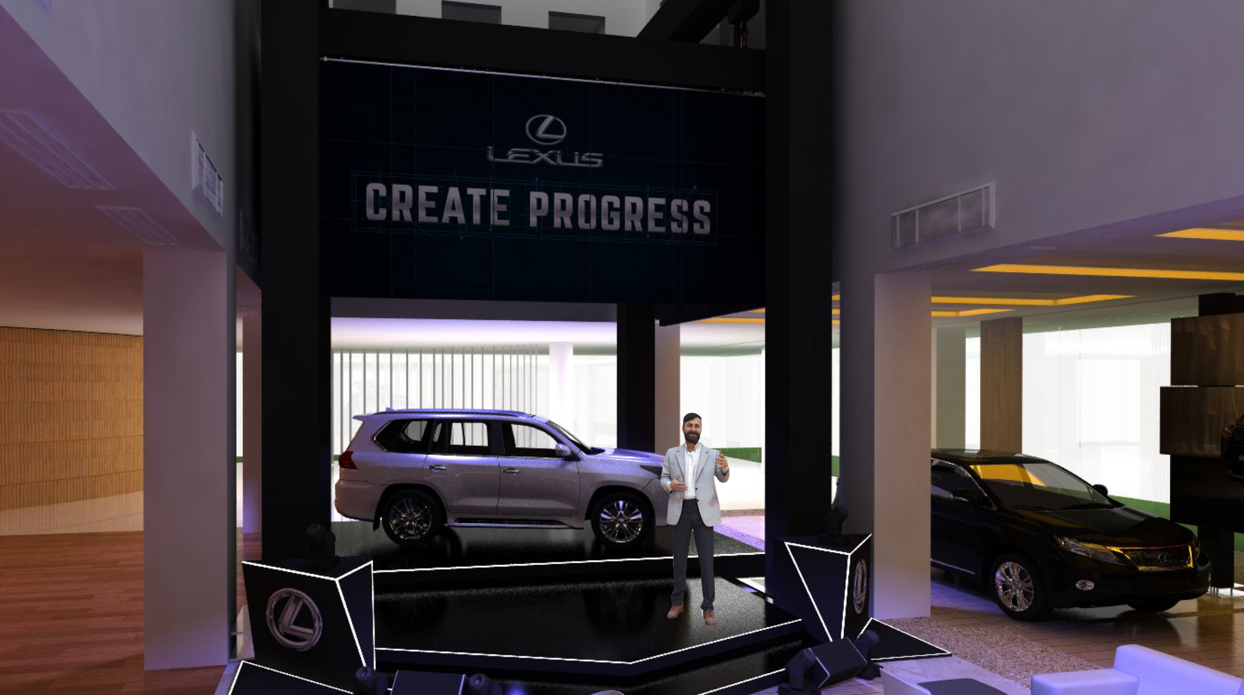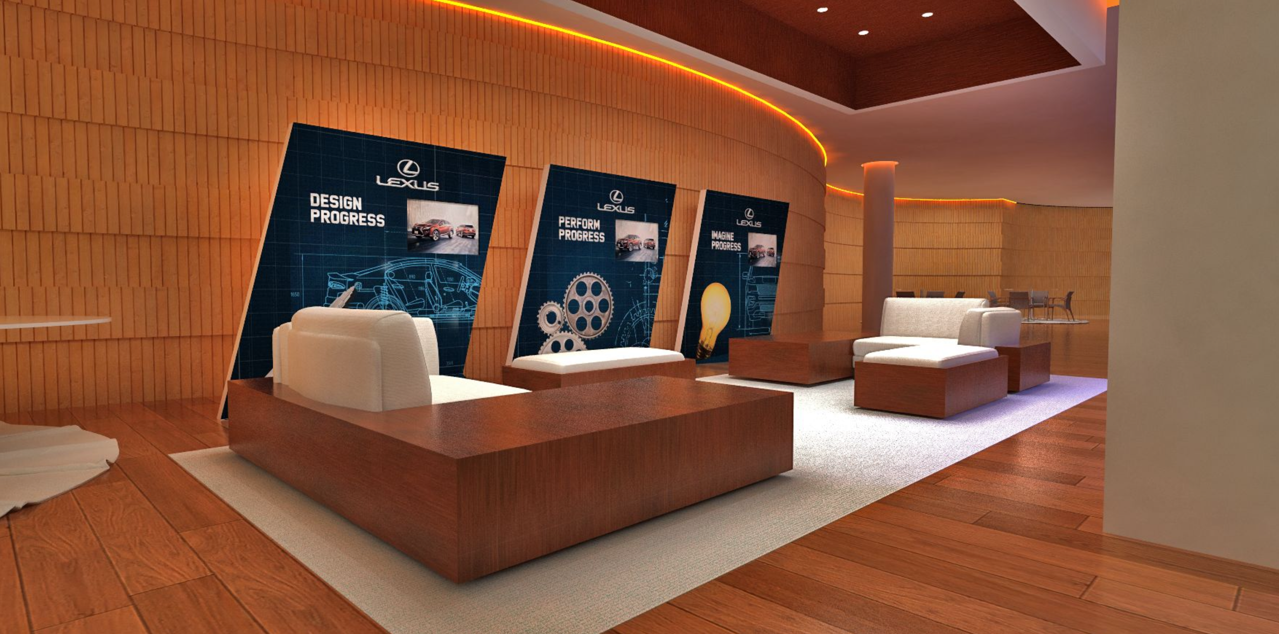 Modules and videos showcased throughout the venue highlighted how guests could "CREATE PROGRESS" with the new Lexus model. It was an immersive experience designed to showcase the vehicle's capabilities and potential for the new generation of sophisticates.