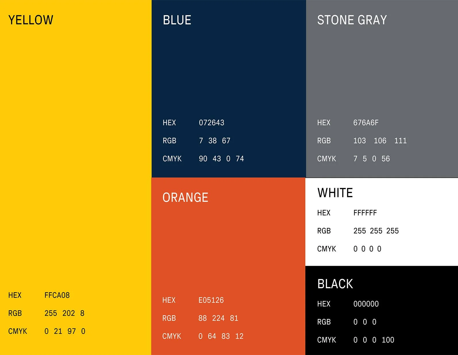 We used sunny yellow and orange to signal joy and appetite, paired with a deep navy for balance and contrast. Stone gray subtly reflects the idea of a "path," grounding the overall look in interiors and bowls.